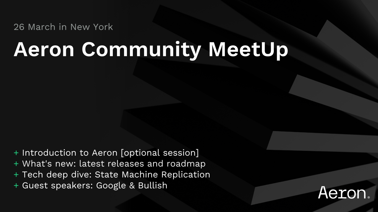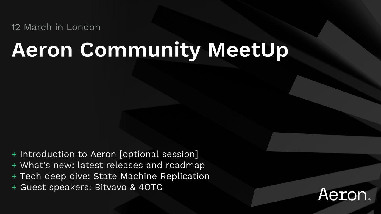 Attend FINOS Silver Member Adaptive's Aeron Community MeetUps for the latest updates on low-latency messaging and fault-tolerant trading technology